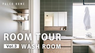 キッチン横に配置した洗面脱衣室スペース‐浴室と水回りをひとまとめに。玄関から玄関収納を経由してパントリー、キッチンと移動できる間取りをうまく活用した回遊動線で家事時間短縮を実現した家。