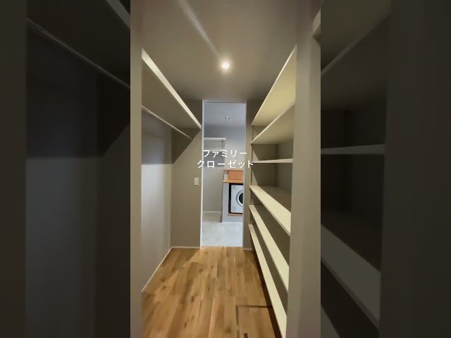 洗濯⇒乾燥⇒アイロンがけ⇒収納がスムーズになるよう、大型ファミリークローゼットと隣接している。ハンガーパイプを使用者に合わせ調整し取り付けることで、お子様やキャップ好きのオーナー様、奥さま一人一人が収納しやすい空間に。